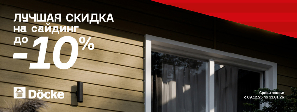 Получите лучшую скидку -10% на сайдинг Docke! Этот материал идеален для отделки фасадов малоэтажных домов: надежная защита в любых погодных условиях и точная имитация дерева или камня. Не упустите шанс обновить дом до конца года с максимальной выгодой!